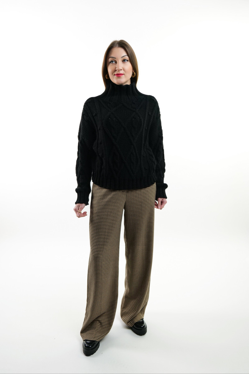 Брюки гусиная лапка прямого крою. ОТ - 82см ОБ - 100см Длина - 110см Состав: 62% полиестер, 35% вискоза, 3% еластан.
