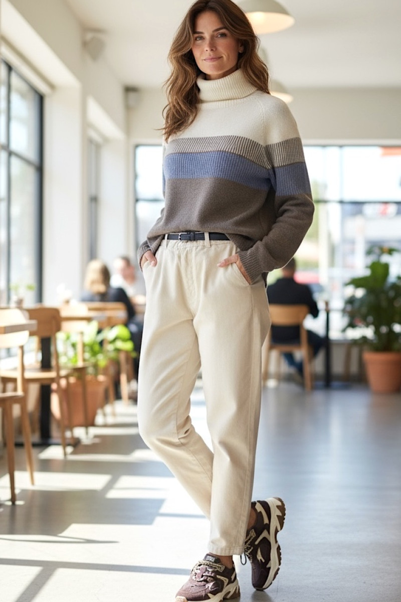 Стильные молочные брюки из микровельвета — сочетание нежности, комфорта и современного дизайна. Мягкая приятная ткань отлично держит форму и дарит удобство в течение всего дня. Модель выполнена с удобной посадкой, практичными карманами и универсальным силуэтом, который легко сочетается со свитерами, водолазками, футболками и рубашками. Подходят как для повседневных образов, так и для офиса или прогулок.