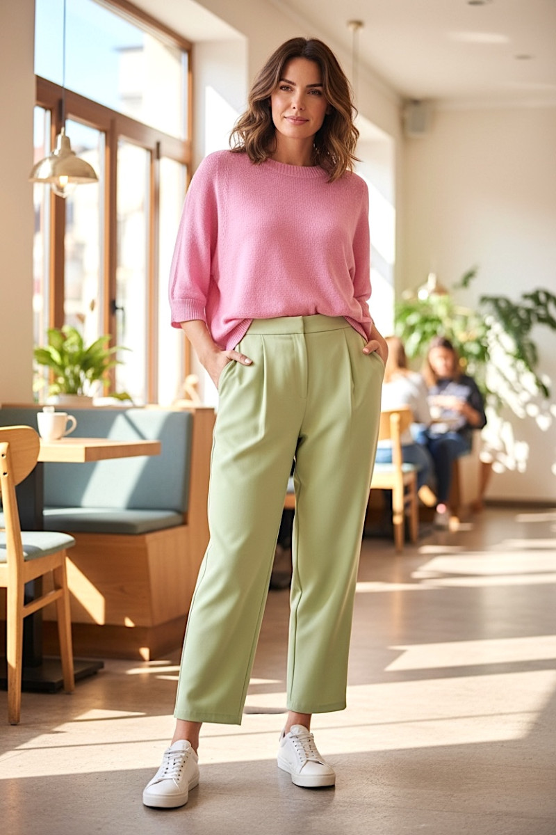 Лёгкий джемпер из 100% хлопка обеспечивает максимальный комфорт и естественную мягкость при носке. Натуральная ткань хорошо пропускает воздух и приятна к телу, что делает модель идеальной для тёплого сезона. Нежный розовый оттенок придаёт образу свежесть, женственность и лёгкость. Круглый вырез и мягкая трикотажная фактура создают лаконичный внешний вид, а короткий рукав обеспечивает комфорт в повседневной носке. Универсальный дизайн позволяет легко сочетать джемпер с джинсами, брюками или юбками.