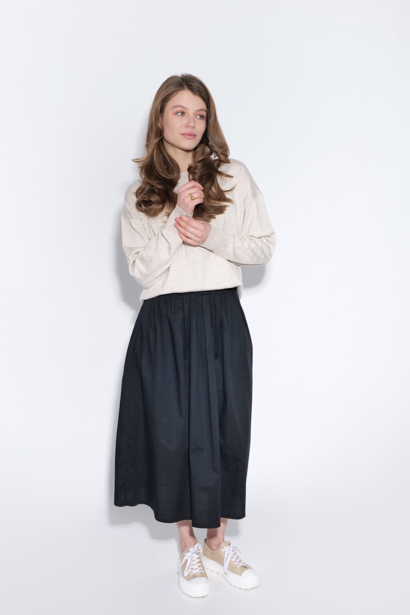 Представляем вашему вниманию черную юбку из хлопка с карманами и резинкой на поясе. Удобная и стильная модель. Размер универсальный. Подходит как на размер S, так и на размер L. Состав: 100% хлопок