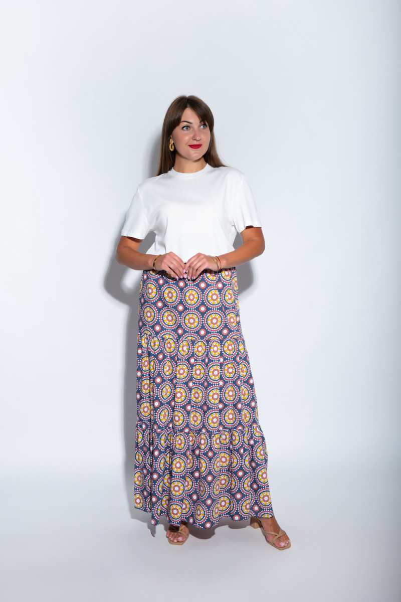 Юбка длины макси с абстрактным рисунком - это идеальное сочетание стиля и комфорта. Удобная модель с поясом-резинкой обеспечивает идеальную посадку и комфорт в течение дня. Яркий абстрактный рисунок добавляет образу уникальности и динамичности. Идеально подходит для любых событий, от повседневной носки до вечерних выходов. Состав: 100% хлопок.