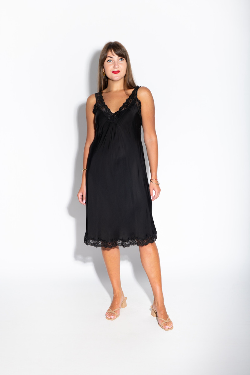 Короткое чёрное платье в бельевом стиле. Состав: 100% вискоза.