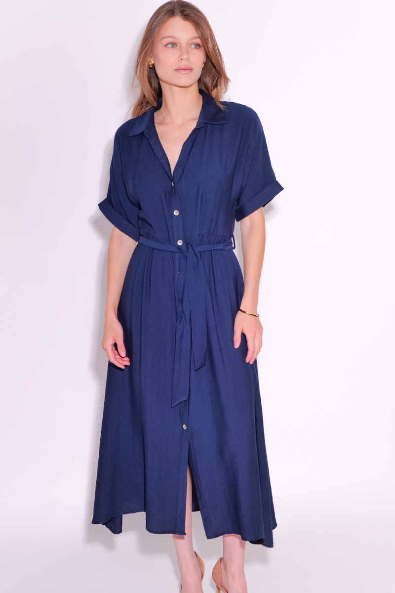 Это платье сочетает в себе лаконичность и женственный шарм. Выполнено из мягкой вискозы в насыщенном тёмно-синем цвете, модель украшает классический воротник, планка на пуговицах и тонкий пояс, подчёркивающий талию. Лёгкий полуклёш создаёт динамику, сохраняя при этом сдержанный силуэт. В этом платье вы будете чувствовать себя уверенно на деловой встрече и элегантно на вечернем мероприятии. Состав: 85% вискоза, 15% нейлон Цвет: тёмно-синий Фасон: полуклёш, длина миди Детали: воротник, планка на пуговицах, тонкий пояс Стиль: минимализм, smart-casual, everyday elegance