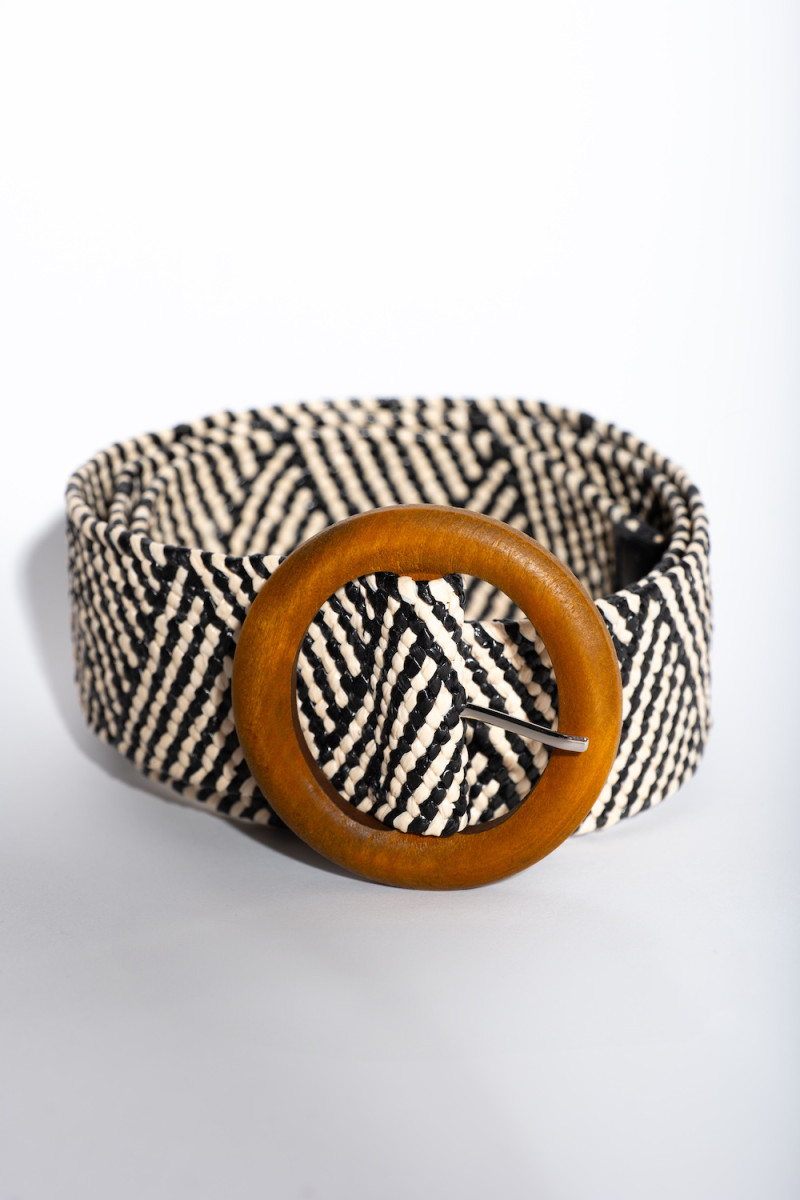 Бело чёрный пояс с коричневой пряжкой итальянского бренда Dixie