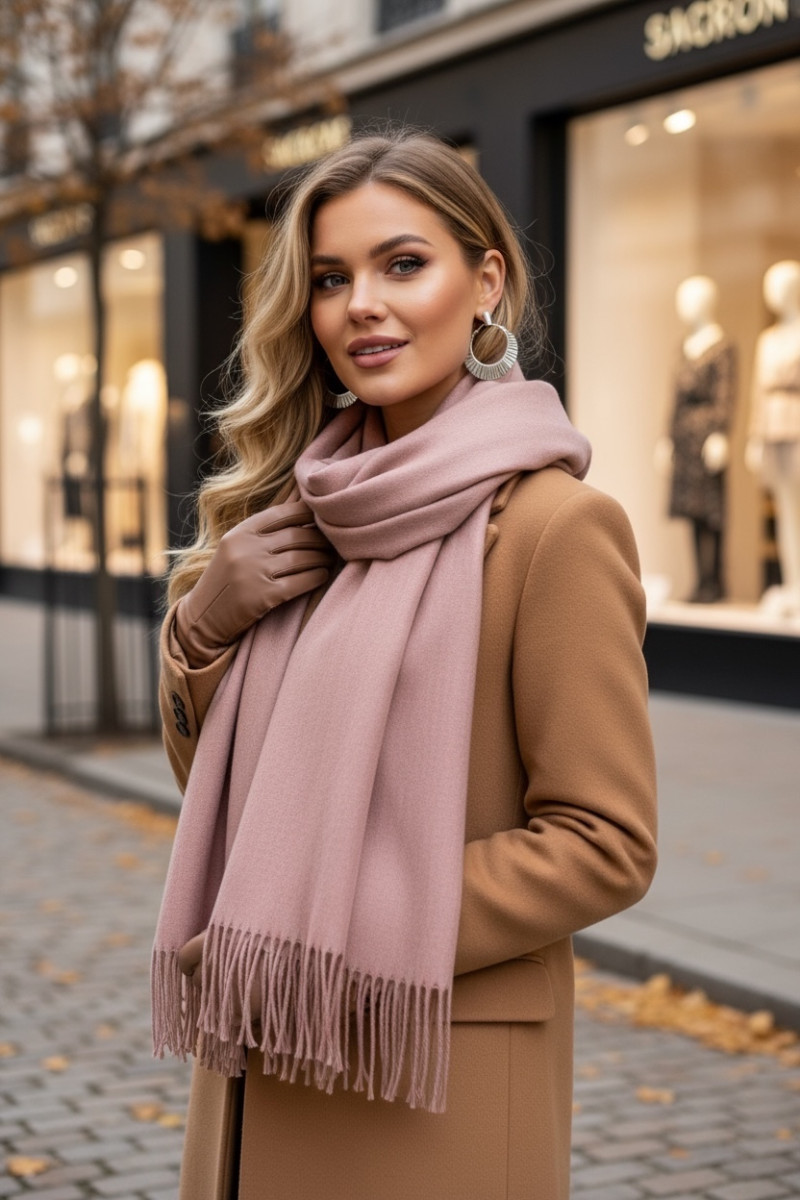 Нежный и тёплый шарф розового цвета из шерсти, кашемира и вискозы. Мягкий и приятный к телу, придаёт элегантность и уют любому образу.