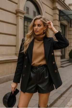 Черные шорты с карманами, эко кожа. Удобная посадка. Состав: 50% полиэстер, 50% полиуретан...