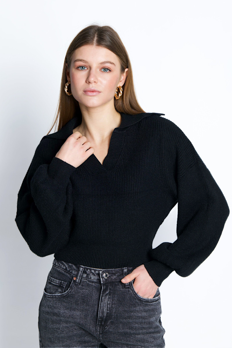 Чёрный свитер-поло No-Na - это классический элемент гардероба, который сочетает в себе стиль и комфорт. Изготовленный из качественных материалов, этот свитер-поло идеально подходит для различных образов и придаст вам изысканности. Вы можете его носить как с джинсами так и юбками.