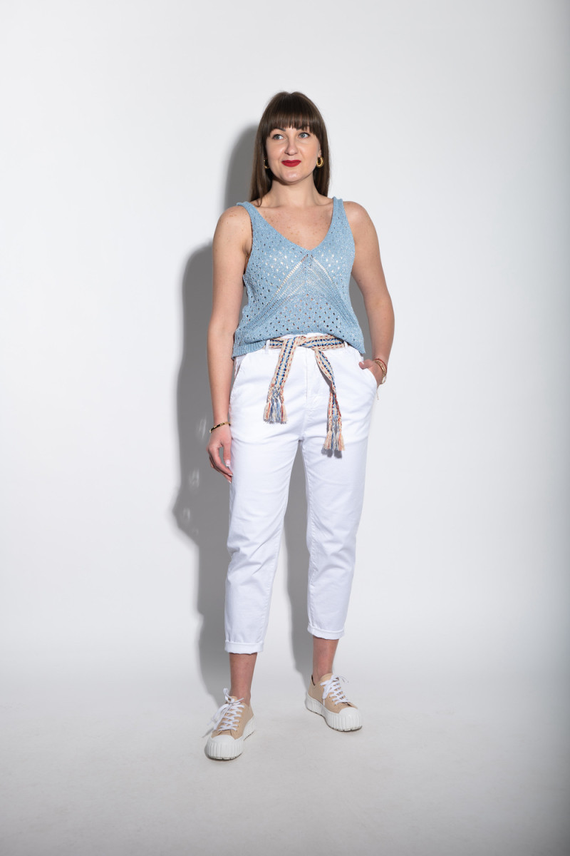 Нежно-голубой вязаный топ с V-образным вырезом - это изысканный и стильный элемент вашего гардероба. Изготовленный из мягкого и приятного на ощупь материала, этот топ обеспечивает комфорт на протяжении всего дня. V-образный вырез добавляет образу элегантности и подчеркивает линию декольте. Идеальный для сочетания с различными стилями одежды, этот топ станет отличным выбором как для повседневных, так и для особых случаев. Состав: 44% хлопок, 44% полиэстер, 20% полиамид